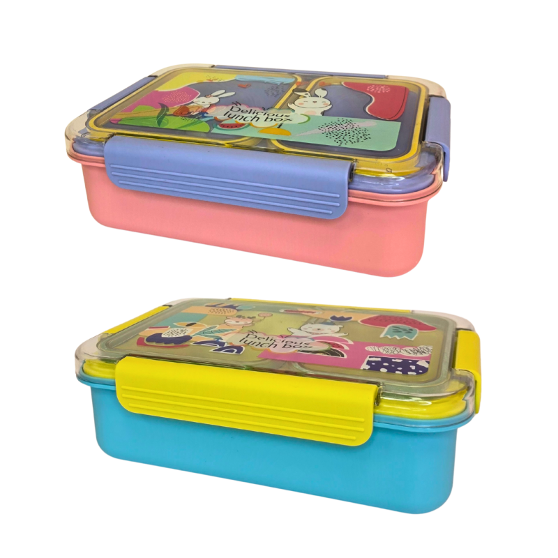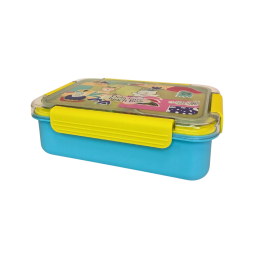 Spalvinga ir žaisminga pietų dėžutė vaikams, puikiai tinkanti darželiui, mokyklai ar išvykoms. Dėžutė turi vidinį įdėklą su 2 patogiais skyreliais maistui atskirti ir šaukštelį. Išorinis dangtelis užsegamas keturiais tvirtais užsegimais, todėl maistas neišbyrės.