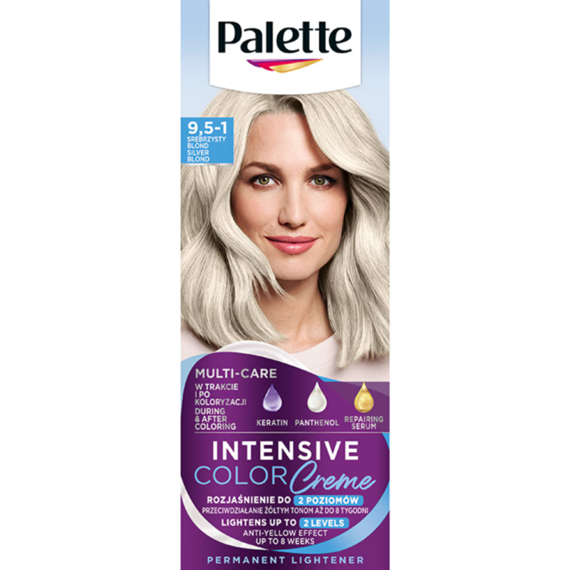 Suteikite savo plaukams šaltą, modernų sidabrinį atspalvį ir švarų, elegantišką spindesį su Palette Intensive Color plaukų dažais. Šis atspalvis sukurtas tam, kad padėtų neutralizuoti nepageidaujamus geltonus tonus ir išgauti išraiškingą, vėsų spalvos rezultatą. Pažangi Multi-Care formulė padeda puoselėti plaukus dažymo metu ir po jo, užtikrindama tolygią, ilgai išliekančią spalvą bei sveiką plaukų išvaizdą.