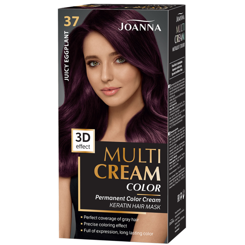 Atraskite išraiškingą, sodrų baklažano violetinį atspalvį su Joanna Multi Cream Color plaukų dažais. Intensyvi spalva ir moderni formulė leidžia pasiekti gilų, daugiamatį rezultatą, o plaukai po dažymo atrodo žvilgantys, glotnūs ir kupini gyvybės.