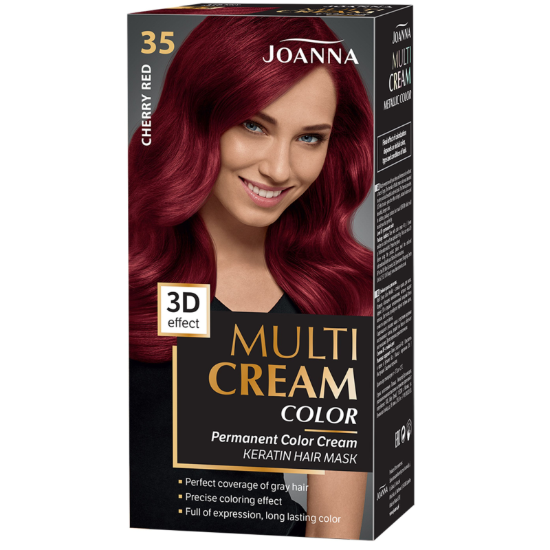 Suteikite savo plaukams sodrų, vyšninės raudonos spalvos atspalvį ir išskirtinį spindesį su Joanna Multi Cream Color plaukų dažais. Pažangi formulė užtikrina ryškų, tolygų dažymą ir ilgai išliekantį rezultatą, o plaukai po dažymo atrodo glotnūs, gyvybingi ir prižiūrėti.