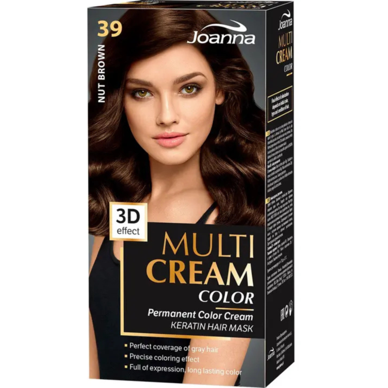 Suteikite savo plaukams natūralų, sodrų riešutinės rudos atspalvį su Joanna Multi Cream Color plaukų dažais. Kruopščiai subalansuota formulė užtikrina tolygų dažymą, gilią spalvą ir išraiškingą blizgesį, o plaukai po dažymo atrodo glotnūs, švelnūs ir prižiūrėti.