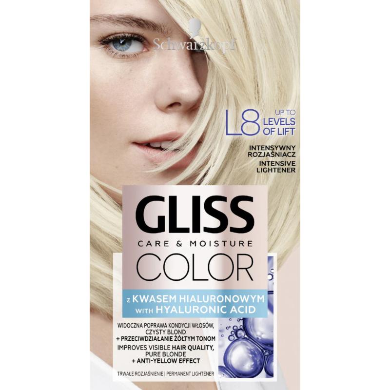 Atraskite intensyvų, bet kartu plaukus puoselėjantį šviesinimą su Schwarzkopf Gliss Care & Moisture Color. Šis intensyvus plaukų šviesiklis leidžia pasiekti iki 8 lygių pašviesinimą, suteikdamas švarų, skaidrų blond atspalvį ir pastebimai pagerindamas plaukų būklę. Formulė su hialurono rūgštimi padeda išlaikyti drėgmę ir apsaugo plaukus šviesinimo metu.