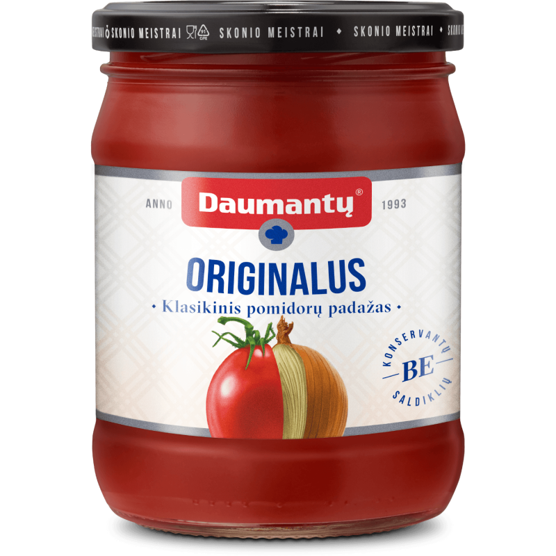 Su pomidorų gabaliukais. Platintojas: UAB DAUMANTAI LT Kilmės šalis: LIETUVA Grynasis kiekis: 500G