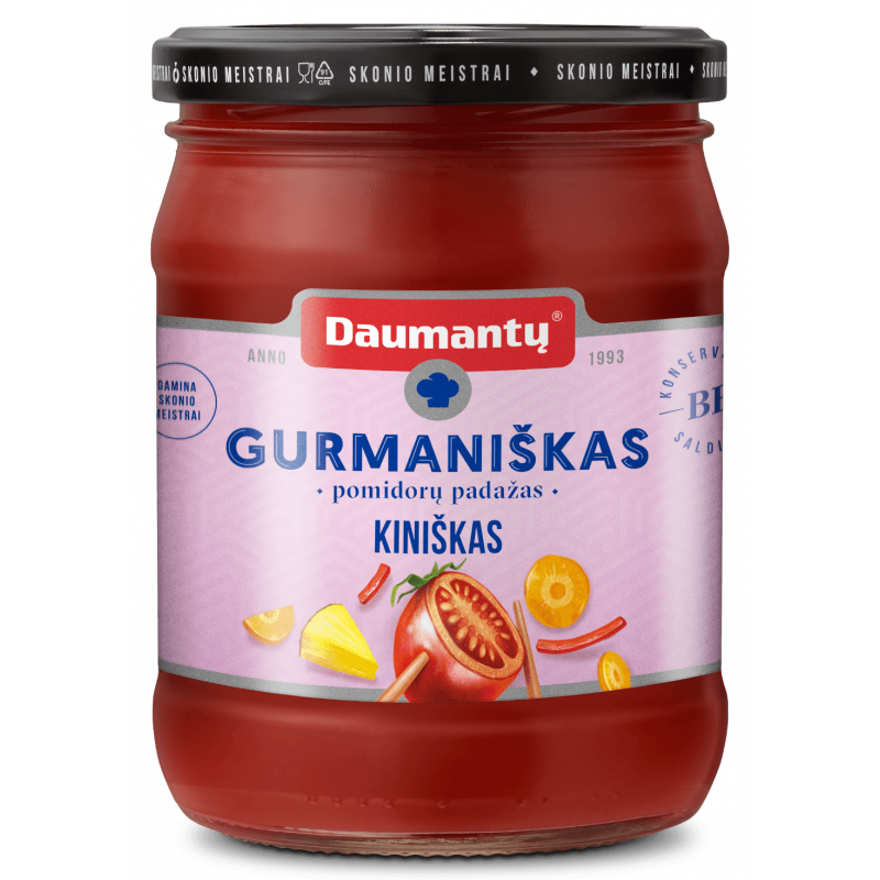 Su pomidorų gabaliukais. Platintojas: UAB DAUMANTAI LT Kilmės šalis: LIETUVA Grynasis kiekis: 500G
