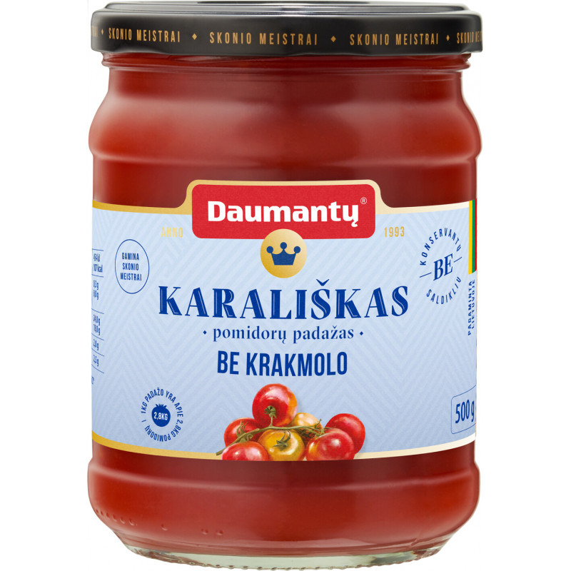 Gamintojas: UAB KĖDAINIŲ KONSERVŲ FABRIKAS Kilmės šalis: LIETUVA Pomidorų pastos kilmės šalis: ES ir ne ES. Grynasis kiekis: 500g