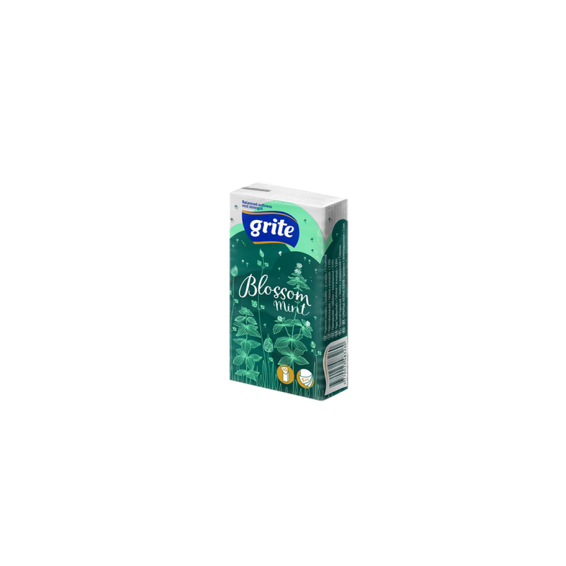 Vienkartinės nosinaitės Grite Blossom Mint , 3sluoksnių