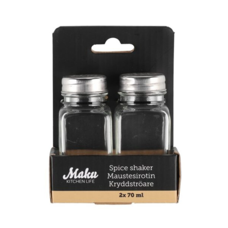 Stilingas ir praktiškas Maku Kitchen Life prieskonių indelių rinkinys, skirtas patogiam kasdieniam naudojimui virtuvėje. Du skaidraus stiklo indeliai su metaliniais skylėtais dangteliais leidžia lengvai dozuoti druską, pipirus ar kitus birius prieskonius. Kompaktiškas dizainas puikiai dera tiek modernioje, tiek klasikinėje virtuvėje.