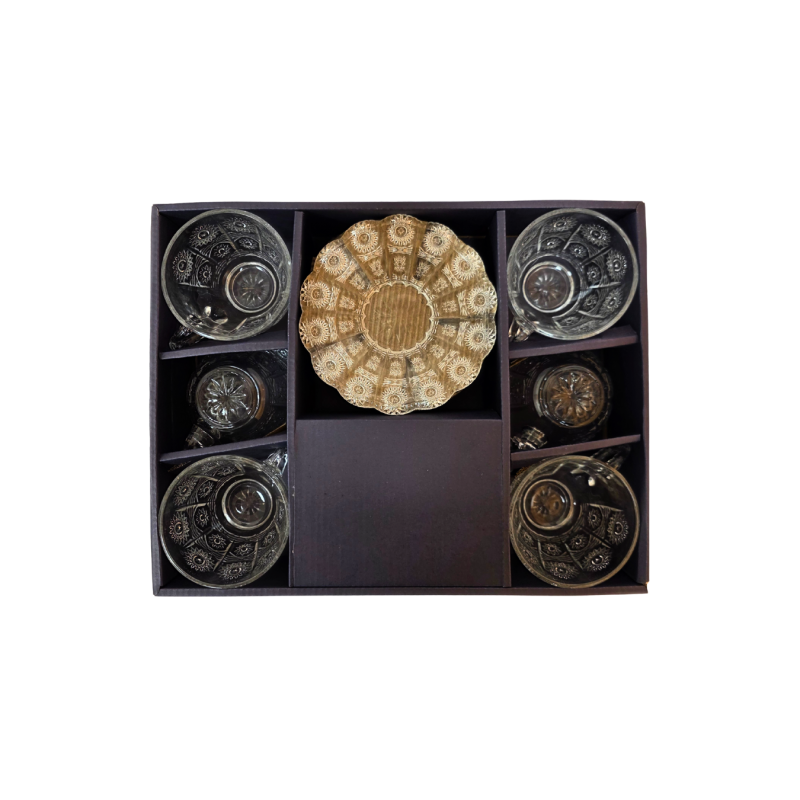 Elegantiškas „Crystallite“ puodelių ir lėkštučių rinkinys, pagamintas iš tvirto, skaidraus ir dekoruoto stiklo. Klasikiniai raštai suteikia išskirtinumo, todėl rinkinys puikiai tinka tiek kasdieniam naudojimui, tiek svečių vaišinimui.