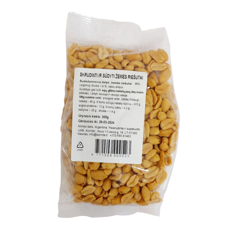 ŽEMĖS RIEŠUTAI 98%; valgomoji druska 1,4%; rapsų aliejus. Sudėtyje gali būti SOJŲ, GLITIMO TURINČIŲ JAVŲ, KITŲ RIEŠUTŲ pėdsakų.