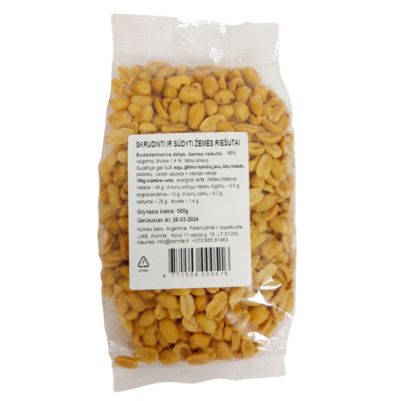 ŽEMĖS RIEŠUTAI 98%; valgomoji druska 1,4%; rapsų aliejus. Sudėtyje gali būti SOJŲ, GLITIMO TURINČIŲ JAVŲ, KITŲ RIEŠUTŲ pėdsakų.