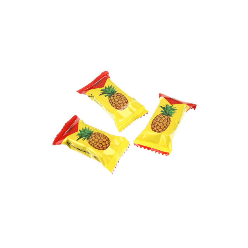 Cukrus, palmių branduolių, palmių riebalai, vaflių lakštai ir smulkinti vafliai (KVIETINIAI miltai, vanduo, rapsų aliejus, valgomoji druska, emulsiklis SOJŲ lecitinai, tešlos kildymo medžiagos: natrio karbonatai, amonio karbonatai), visiškai hidrinti palmių branduolių, palmių riebalai, liesi kakavos milteliai, rūgštingumą reguliuojanti medžiaga pieno rūgštis, emulsiklis SOJŲ lecitinai, kvapiosios medžiagos, šaltyje džiovinti ananasų milteliai (0,02 %). Gali būti MIGDOLŲ, ŽEMĖS RIEŠUTŲ, PIENO(įskaitant LAKTOZĘ) ir jų produktų.