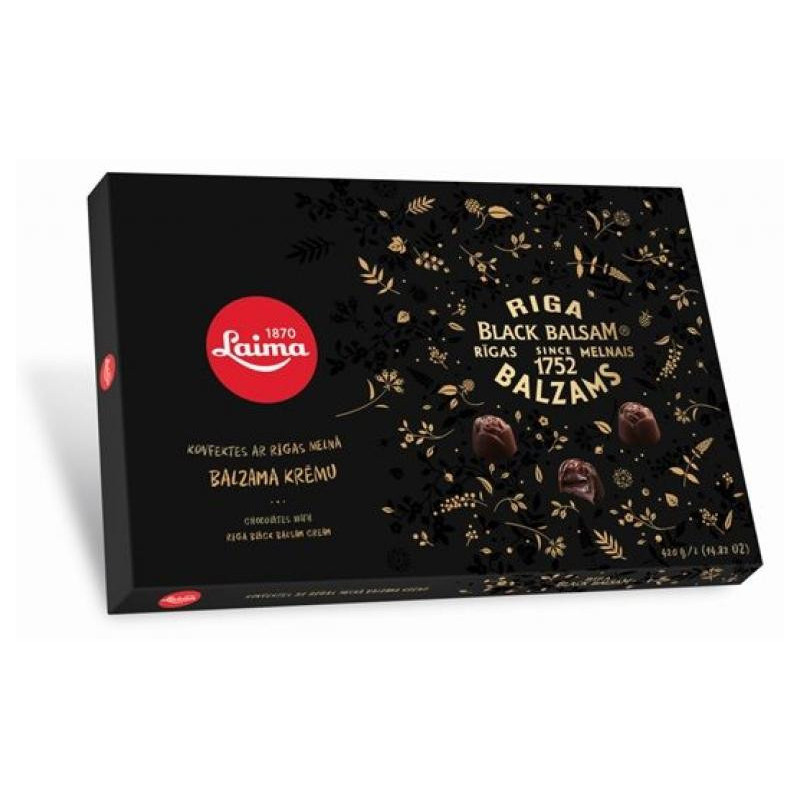 Cukrus, kakavos masė, sutirštintas PIENAS su cukrumi, augaliniai riebalai (palmių aliejus, svistmedžių branduolių aliejus, emulsiklis SOJŲ lecitinas), kakavos sviestas, vanduo, stiprus (alk. 45% tūrio) alkoholinis gėrimas "Riga Black Balsam" 4%, gliukozės sirupas, nugriebto PIENO milteliai, mažesnio riebumo kakavos milteliai, PIENO riebalai, emulsikliai (SOJŲ lecitinasamonio fosfolipidai), kvapiosios medžiagos. Kakavos sausųjų medžiagų - ne mažiau 45%. Gali būti RIEŠUTŲ pėdsakų. Sudėtyje yra PIENO IR JO PRODUKTŲ (įskaitant LAKTOZĘ).