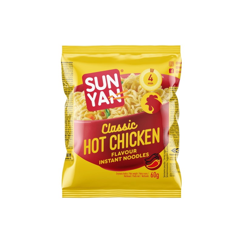 Greitai paruošiami makaronai (92%): KVIETINIAI miltai, palmių aliejus, bulvių krakmolas, druska, tešlos kildymo medžiagos: natrio ir kalio karbonatai. Sultinys (8%): druska, aromato ir skonio stiprikliai: E621, E635; KVIETINIAI miltai, cukrus, kvapioji medžiaga, svogūnai, aitriosios paprikos, karis (kalendra, ciberžolės, petražolės, ožragė, kurminas, pankolis, aitriosios paprikos, druska), saldžioji raudonoji paprika, , ciberolės, petražolės baltieji pipirai, rapsų aliejus. Sudėtyje gali būti VĖŽIAGYVIŲ, SOJŲ, pupelių, PIENO produktų, SALIERŲ ir GARSTYČIŲ pėdsakų.