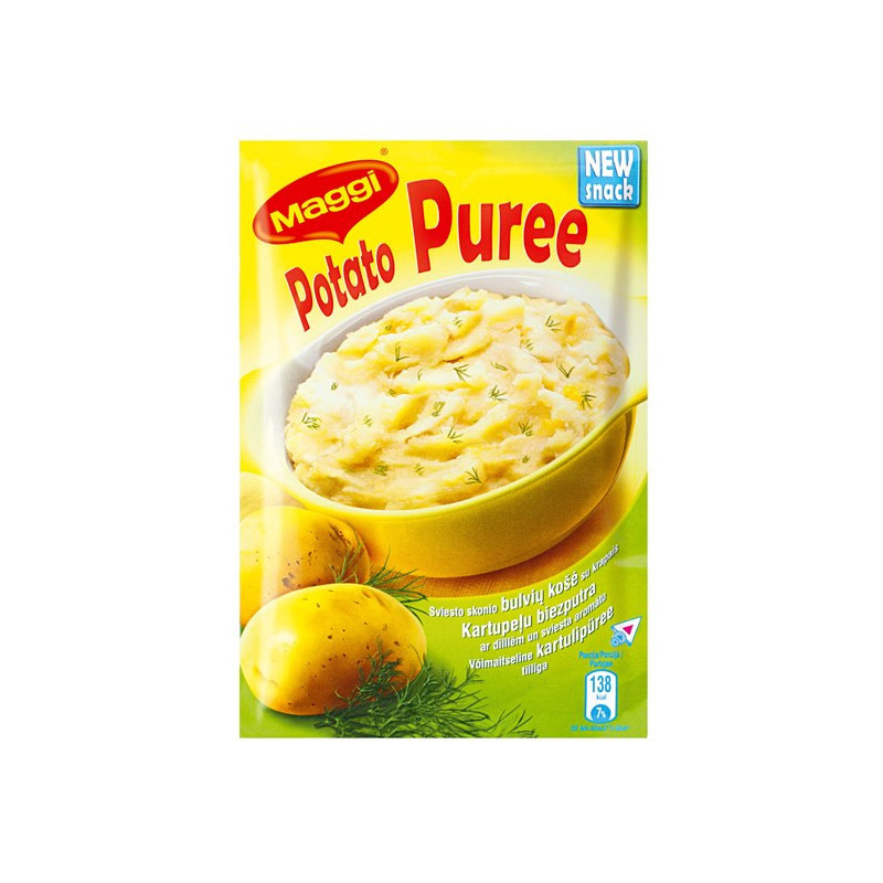 Džiovintos daržovės (bulvės 68,0%, svogūnai), maltodekstrinas, palmių riebalai, aromato ir skonio stiprikliai (mononatrio glutamatas, dinatrio 5'-ribonukleotidai), palmių aliejus, druska, LAKTOZĖ, kvapiosios medžiagos (su PIENU), PIENO baltymai, krapai 0,2%, prieskoniai, česnakų koncentratas. Sudėtyje gali būti GLITIMO, KIAUŠINIŲ, SOJŲ, SALIERŲ ir GARSTYČIŲ.