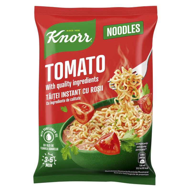 SUDEDAMOSIOS DALYS: Greitai paruošiami makaronai (81 %): KVIETINIAI miltai, palmių riebalai, druska, modifikuotas bulvių krakmolas, cukrus, rapsų aliejus, ciberžolių ekstraktas. Prieskonių mišinys (19 %): pomidorų tyrės milteliai (32 %), gliukozės sirupas, cukrus, druska, kalio chloridas, aromato ir skonio stiprikliai (mononatrio glutamatas, dinatrio inozinatas, dinatrio guanilatas), bulvių krakmolas, kvapiosios medžiagos, dekstrozė, paprikos, ypač tyras alyvuogių aliejus, česnakų milteliai, sojų padažas (SOJŲ pupelės, KVIEČIAI), ciberžolės, maltodekstrinas, petražolės (0,4 %).