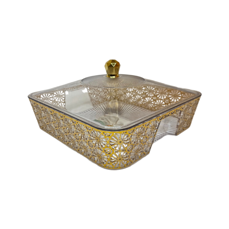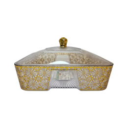 Prabangus ir elegantiškas plastikinis indas su dangčiu – puikus pasirinkimas tiek šventiniam stalui, tiek kasdieniam naudojimui. Išsiskiria išskirtiniu geometriniu raštu ir auksiniais akcentais, kurie suteikia prabangos bei klasikos pojūtį.
