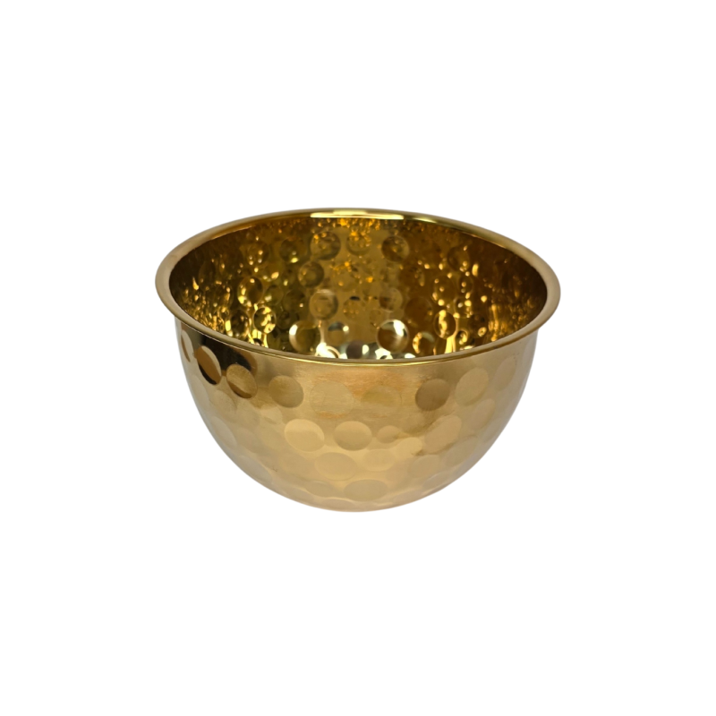 Auksinės spalvos metalinis dubenėlis su faktūriniu paviršiumi