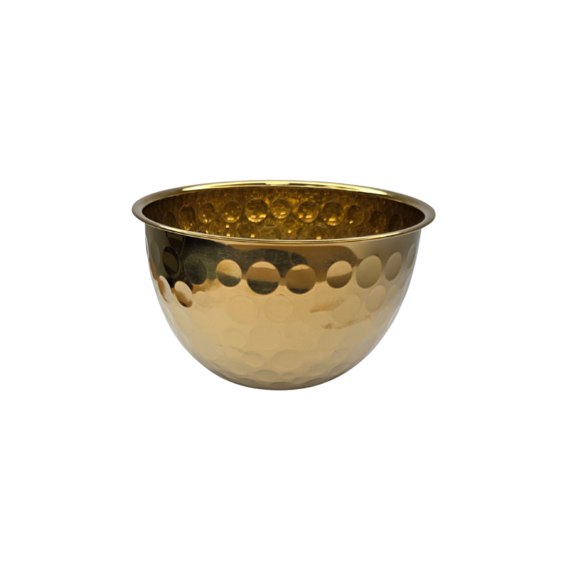 Auksinės spalvos metalinis dubenėlis su faktūriniu paviršiumi
