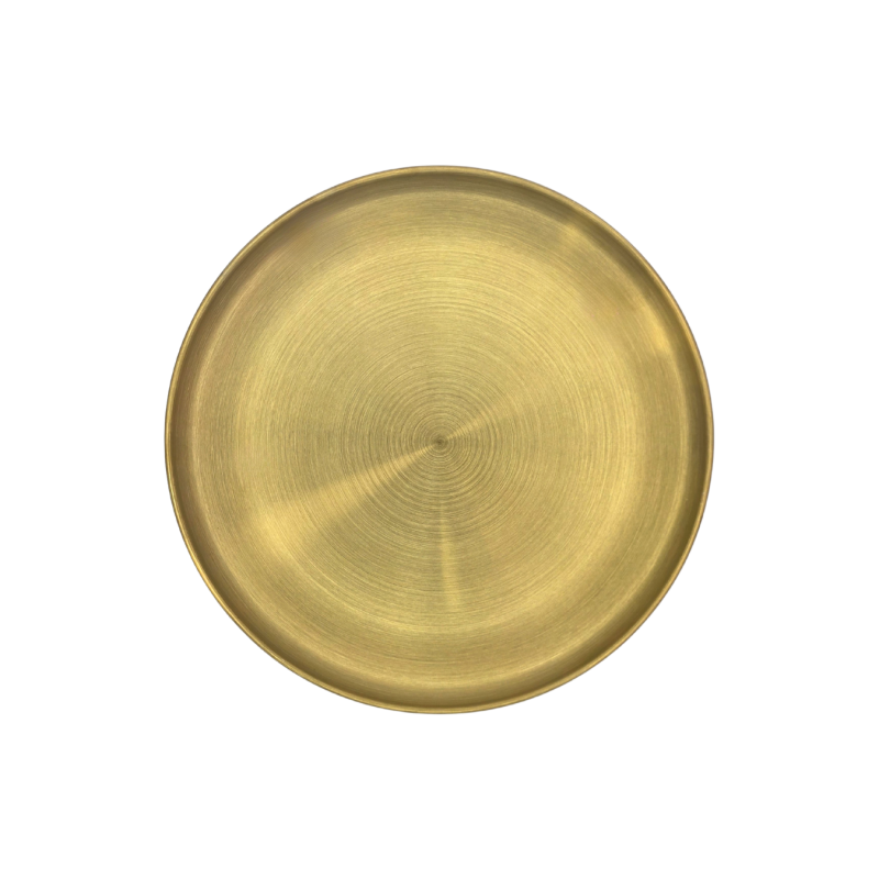 Stilinga ir universali auksinės spalvos metalinė lėkštė – puikus pasirinkimas tiek kasdieniam naudojimui, tiek šventiniam serviravimui. Dėl minimalistinio dizaino ir prabangaus paviršiaus ši lėkštė lengvai dera prie įvairių interjero ir stalo dekoro stilių.