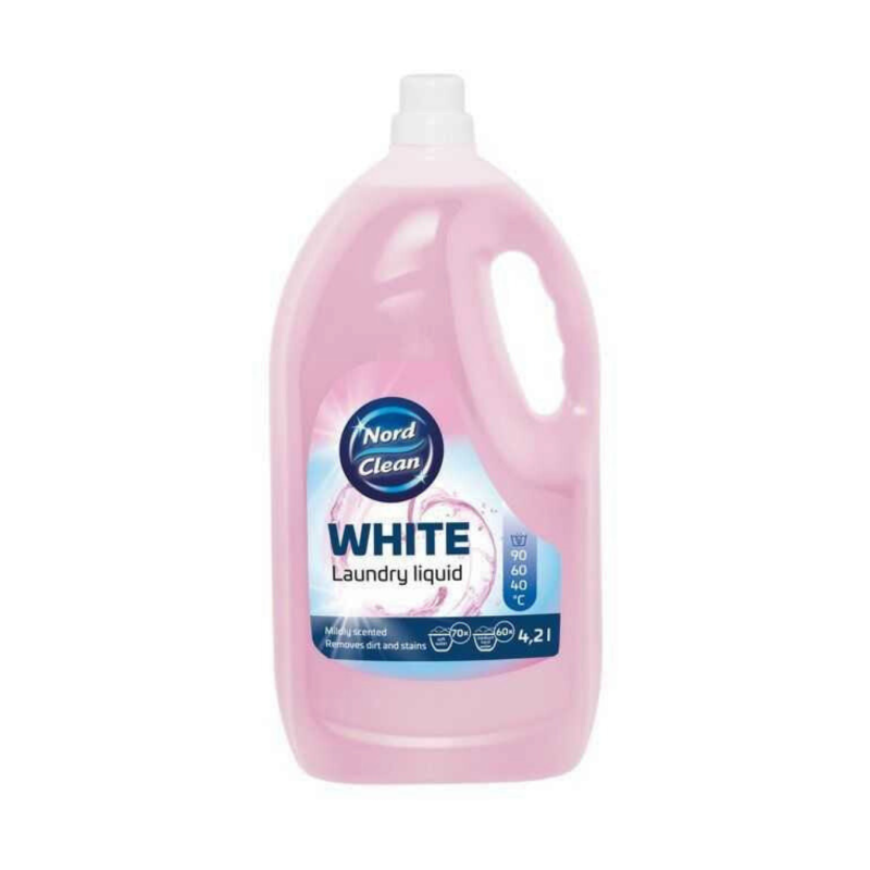 Skalbimo skystis baltiems skalbiniams. Skalbia ir minkština skalbinius, pašalina nešvarumus ir dėmes. Suteikia skalbiniams malonų kvapą. Skalbimo skystis baltiesiems skalbiniams, pat pat tinka skalbimui rankomis. Netinka skalbti vilną ar iš šilką. Visada laikykitės drabužių skabimo ir priežiuros nurodymų.