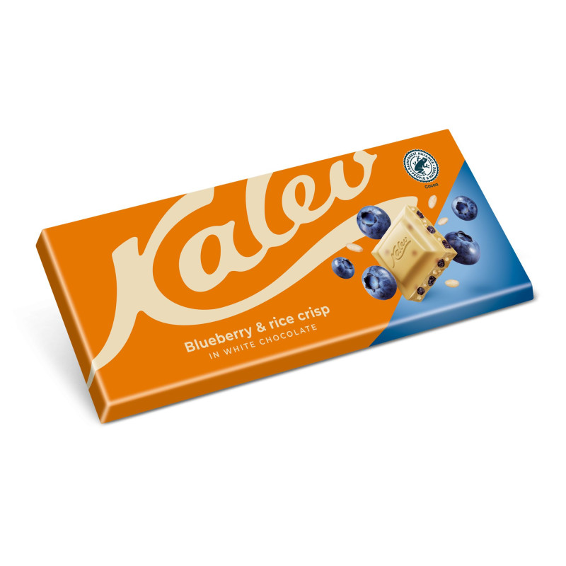 Cukrus, kakavos sviestas, GRIETINĖLĖS milteliai (PIENO), IŠRŪGŲ milteliai (PIENO), mėlynių priedas 8% (cukrus, gliukozės – fruktozės sirupas, mėlynės 15%, obuolių tyrė, ryžių miltai, mėlynių sultys 6%, stingdiklis pektinas, alyvpalmių riebalai, rūgštis citrinų rūgštis, natūrali kvapioji medžiaga, citruzinių vaisių skaidulos), ryžių traškučiai 4% (ryžių miltai, KVIEČIŲ glitimas, KVIEČIŲ salyklas, cukrus, druska, dekstrozė (KVIEČIŲ)), LAKTOZĖ, emulsiklis lecitinai, kvapiosios medžiagos (įskaitant vaniliną), druska. PIENO sausųjų medžiagų baltame šokolade – ne mažiau kaip 19%.