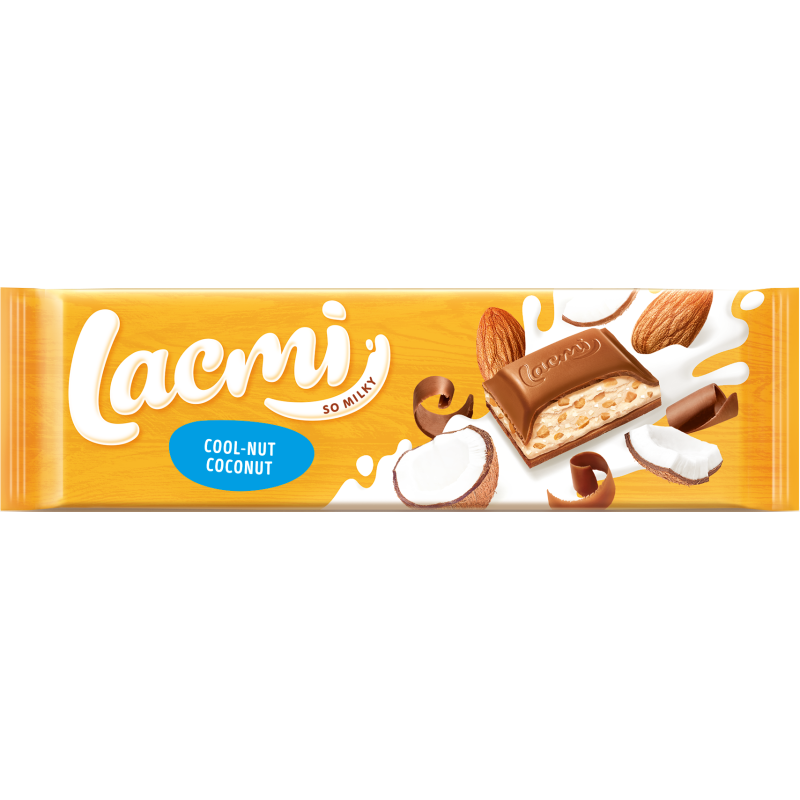 Cukrus, augaliniai aliejai (alyvpalmių branduolių aliejus, alyvpalmių aliejus), kakavos sviestas, NENUGRIEBTI PIENO milteliai, trinta kakava, smulkinti skrudinti MIGDOLAI 6%, PIENO IŠRŪGŲ filttaro milteliai, NUGRIEBTO PIENO milteliai, skrudinti kokosų trupiniai 2%, ryžių traškučiai (ryžių miltai, MANŲ kruopos (iš KVIEČIŲ), cukrus, kukurūzų aliejus, druska), emulsikliai (lecitinai (sudėtyje yra SOJŲ), E476), kvapiosios medžiagos, druska. Sudėtyje gali būti LAZDYNO RIEŠUTŲ, ŽEMĖS RIEŠUTŲ, SEZAMO SĖKLŲ, KIAUŠINIŲ produktų.