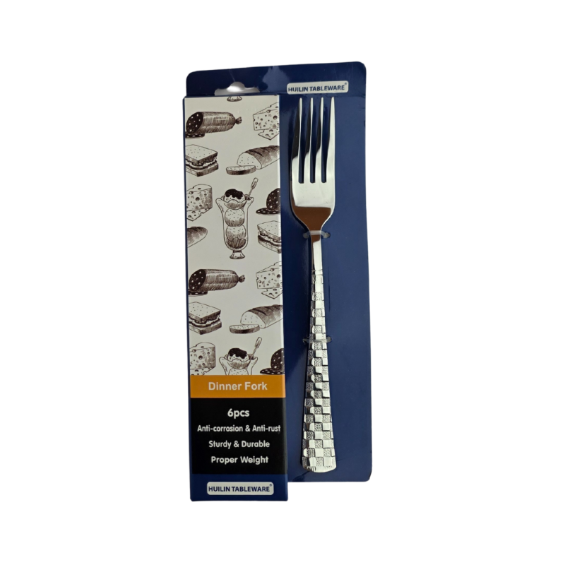 Aukštos kokybės nerūdijančio plieno valgomoji šakutė „Huilin Tableware“ su moderniu kvadratinio rašto dizainu – puikus pasirinkimas kasdienai ar šventiniam stalui. Tvirtos ir patogios formos šakutė yra subalansuoto svorio, todėl maloniai guli rankoje. Atspari rūdijimui ir korozijai, lengvai prižiūrima ir ilgaamžė. Puikiai dera su kitais „Huilin Tableware“ stalo įrankiais.