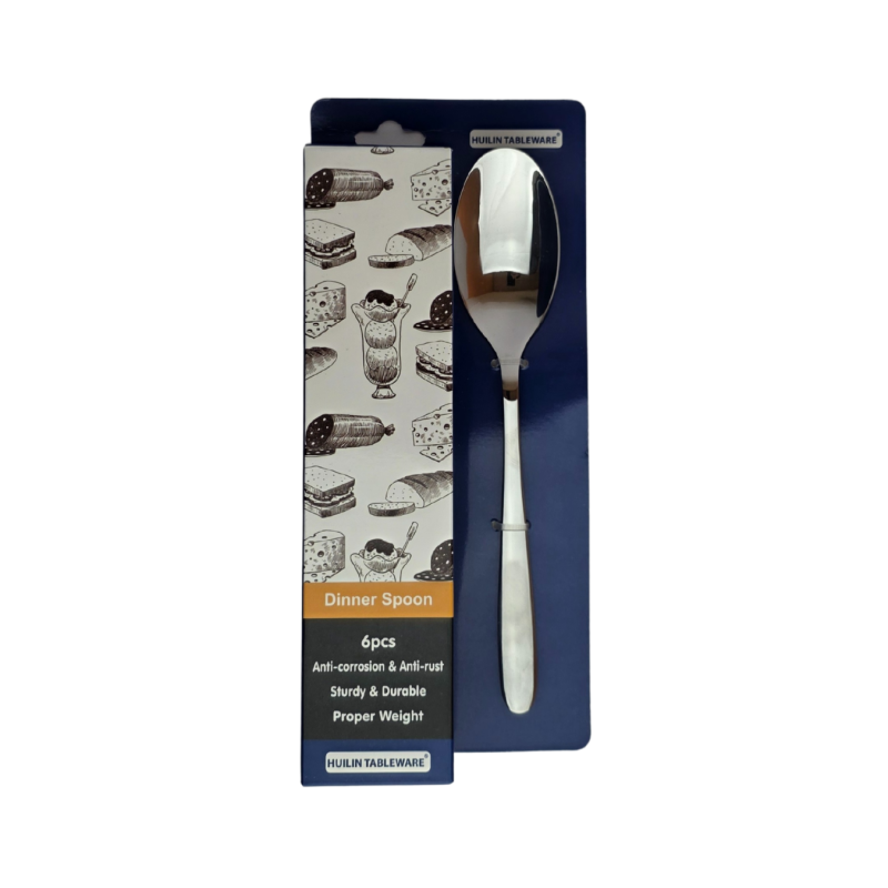 Aukštos kokybės nerūdijančio plieno valgomasis šaukštas „Huilin Tableware“ išsiskiria tvirta konstrukcija ir elegantišku, minimalistiniu dizainu. Šaukštas yra malonus laikyti, tinkamo svorio, todėl patogus naudoti tiek kasdien, tiek šventiniuose pietuose. Atsparus rūdijimui ir korozijai, lengvai valomas bei ilgaamžis. Puikus pasirinkimas kiekvienai virtuvei.