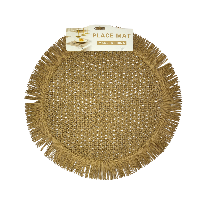 Natūralaus stiliaus apvalus stalo padėkliukas, pagamintas iš pintos medžiagos su dekoratyviniais kutais aplink kraštą. Puikiai tinka tiek kasdieniam naudojimui, tiek stalo serviravimui ypatingomis progomis. Suteikia interjerui jaukumo ir bohemiško akcento.