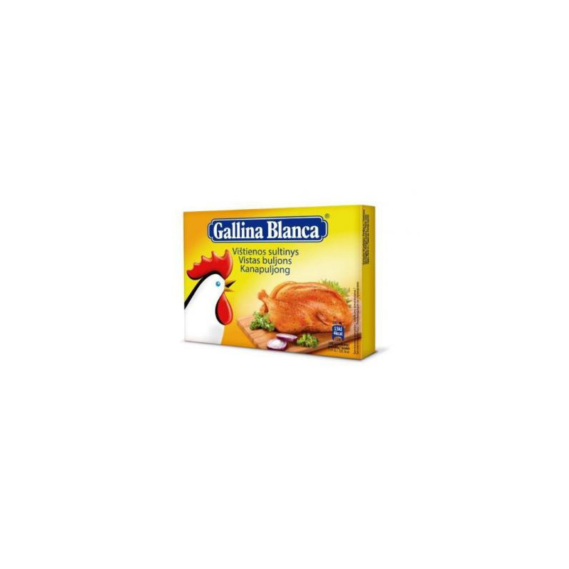 Druska, kukurūzų krakmolas, aromato ir skonio stiprikliai (E621, E635), augaliniai palmių riebalai, maltodekstrinas, cukrus, vištiniai riebalai, augalinių baltymų ekstraktas (yra KVIEČIŲ), KVAPNIOSIOS MEDŽIAGOS (yra SOJŲ), vištiena 0,4%, prieskoniai, daržovės (petražolės, SALIERAI, svogūnai, morkos), dažiklis (riboflavinas).