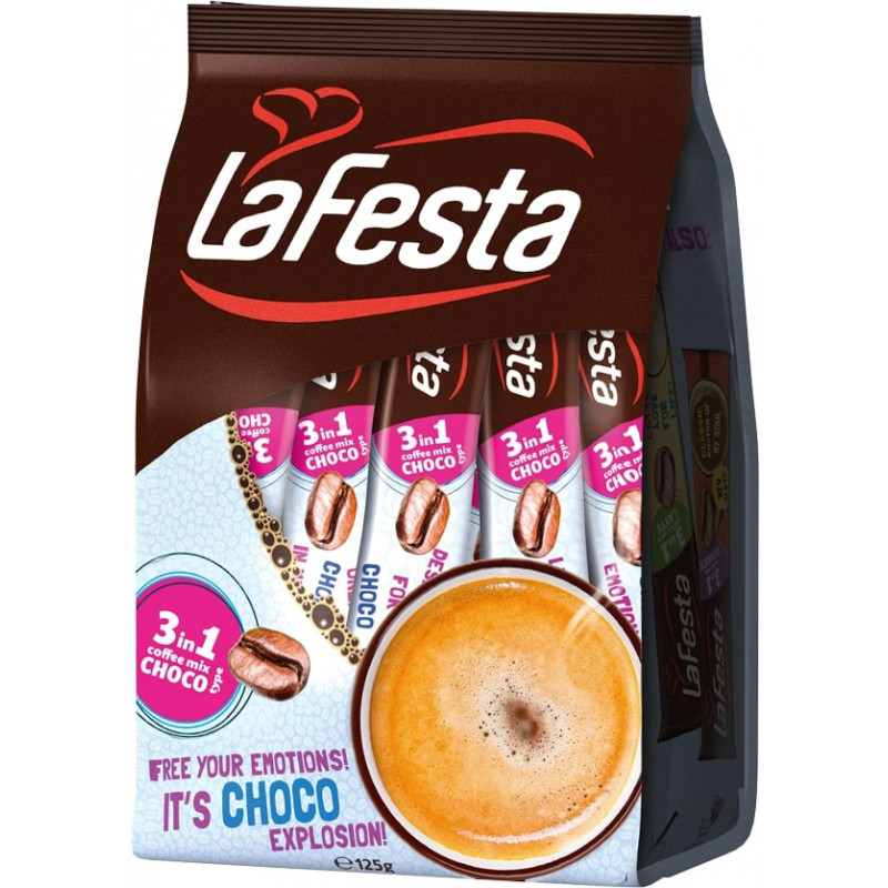 Cukrus, gliukozės sirupas, visiškai hidrinti kokoso riešutai, kavos ekstraktas-12%, nugriebto PIENO milteliai, liesi kakavos milteliai (5,5%), tirštiklis E466, stabilizatoriai: E340, E452; kvapiosios medžiagos, druska, PIENO baltymai, emulsikliai: E471, E472e; saldikliai: aspartamas, acesulfamas K. Sudėtyje yra fenilalanino šaltinis. Gamybos vietoje taip pat naudojamos SOJOS bei GLITIMAS.