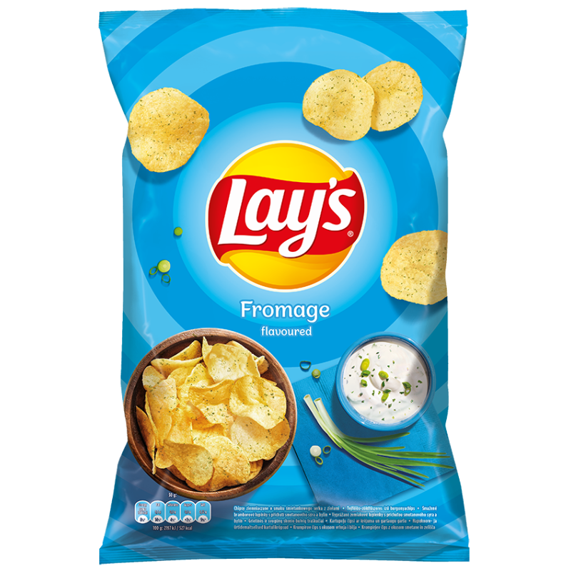 Bulvės, augaliniai aliejai (įvairiomis dalimis: kukurūzų, saulėgrąžų, rapsų), druska, saldūs PIENO išrūgų milteliai, aromato ir skonio stiprikliai (mononatrio glutamatas, dinatrio guanilatas), cukrus, svogūnų milteliai, gliukozės sirupas, kvapiosios medžiagos (sudėtyje yra PIENO), petražolių lapai, SŪRIO milteliai iš PIENO, prieskoniai. Supakuota naudojant apsaugines dujas. Aliejus pakuotės viduje yra normalu ir tai nėra produkto defektas.