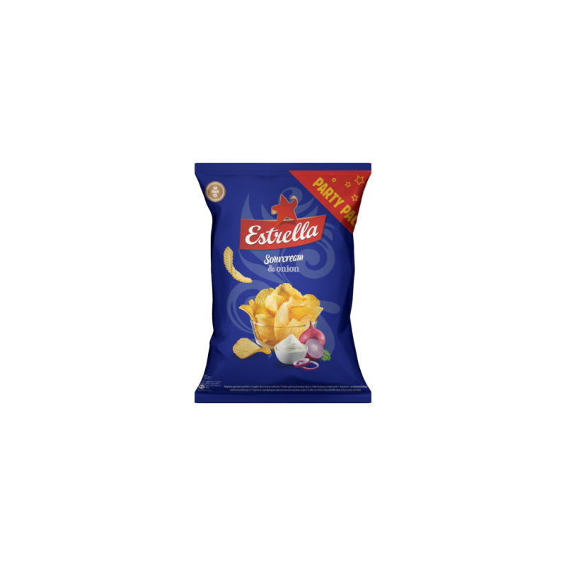 Bulvės, augaliniai aliejai (įvairiomis dalimis: saulėgrąžų, rapsų),(druska, svogūnų milteliai (1,3%) išrūgų milteliai (iš PIENO) ,natūralios kvapiosios medžiagos, cukrus, pasukų milteliai (iš PIENO), mielių ekstraktas, grietinėlės milteliai (0,14%) (iš PIENO), prieskoninės žolelės (petražolės), mielių milteliai, česnakų milteliai,rūgštis :citrinų rūgštis).