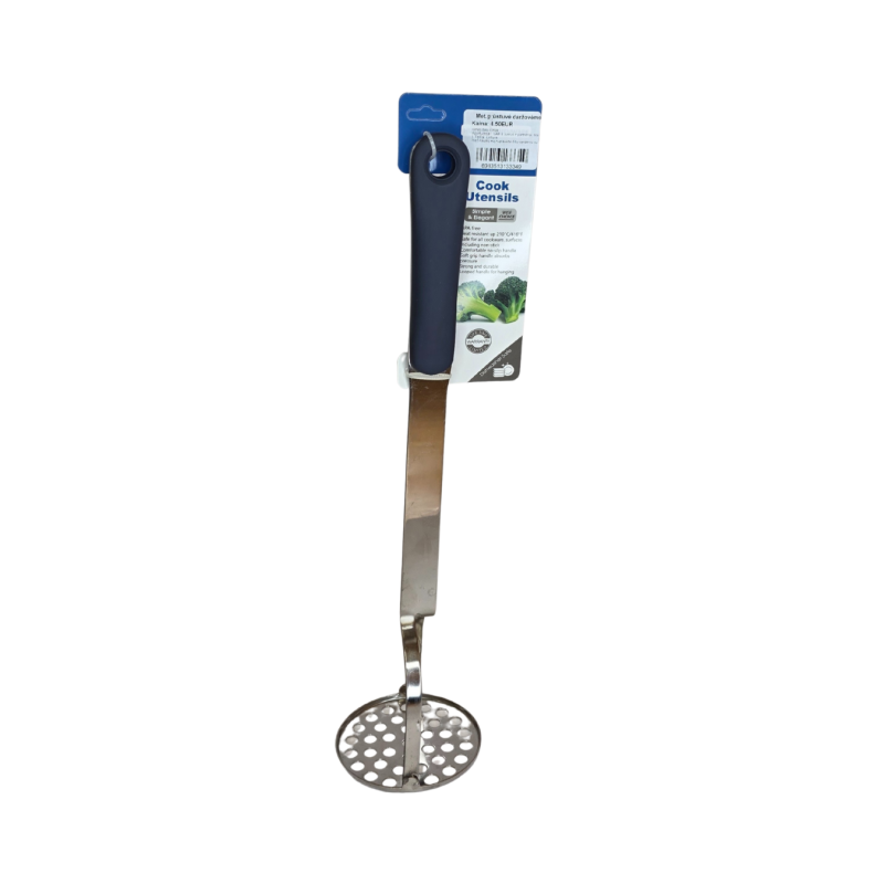 Patogi ir tvirta daržovių grūstuvė – nepakeičiamas įrankis virtuvėje. Pagaminta iš nerūdijančio plieno su patogia neslystančia rankena, kuri užtikrina saugų ir lengvą naudojimą. Puikiai tinka daržovėms, bulvėms ar vaisiams trinti ir tyrėms ruošti. Lengvai valoma ir pritaikyta kasdieniam naudojimui.