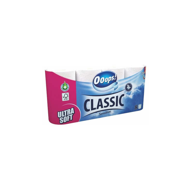 Tualetinis popierius Ooops!Classic Sensitive 8rit.,3sluoksnių