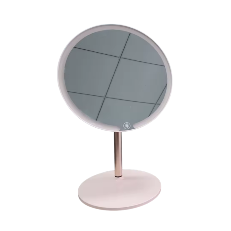 Modernus ir elegantiško dizaino kosmetinis veidrodis su įdiegtu LED apšvietimu – puikus pasirinkimas makiažui, odos priežiūrai ir kasdieniam pasiruošimui. Ryškus ir tolygus šviesos žiedas apšviečia veidą iš visų pusių, todėl matosi net smulkiausios detalės. Apšvietimas įjungiamas patogiu lietimui jautriu mygtuku.