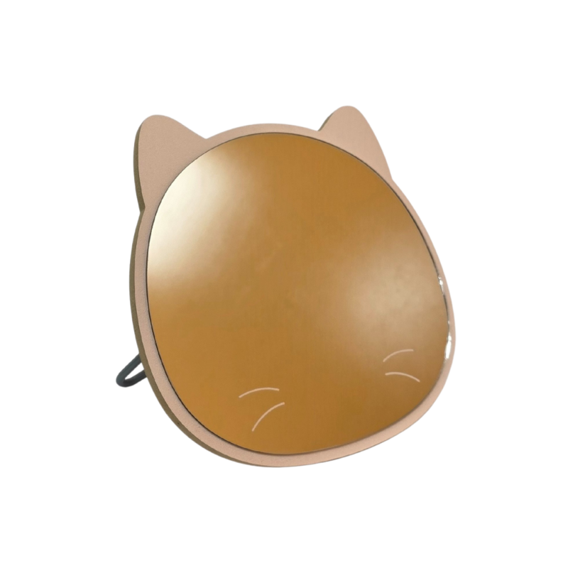 Mielas ir stilingas 17 cm dydžio katino formos veidrodis taps žaismingu akcentu ant kosmetinio stalelio, rašomojo stalo ar lentynos, o subtilios „ūsų“ detalės prideda žaismingumo. Tvirtas metalinis stovas leidžia veidrodį patogiai pastatyti ir naudoti kasdieniam makiažui ar aksesuarų derinimui.