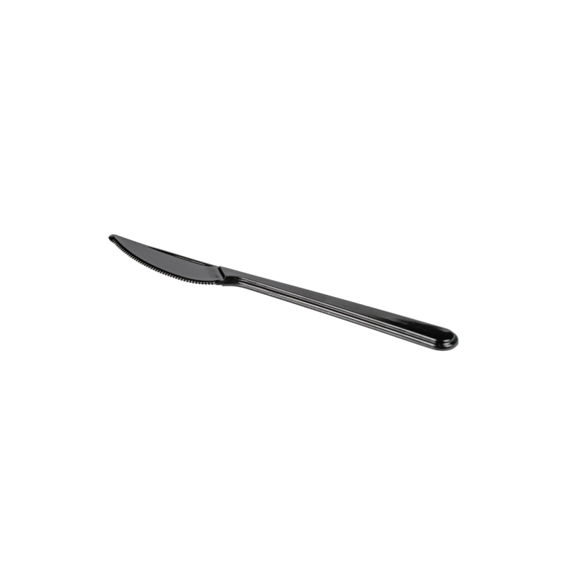 Tvirti ir patogūs juodos spalvos plastikiniai peiliai — puikus pasirinkimas renginiams, piknikams, šventėms ar kasdieniam naudojimui. Dantyta ašmenų dalis užtikrina efektyvų pjaustymą, o 18 cm ilgis suteikia patogumą laikyti.