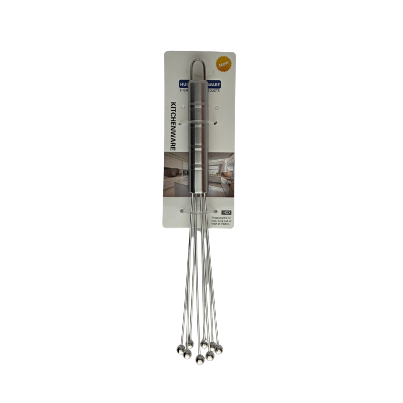 Modernus nerūdijančio plieno plakiklis su rutuliukais – patogus ir efektyvus įrankis maišymui bei plakimui. Inovatyvi konstrukcija su metaliniais rutuliukais leidžia greičiau išplakti kiaušinius, grietinėlę užtikrinant tolygų rezultatą. Tvirtas, lengvas ir ilgaamžis plakiklis pasižymi ergonomiška rankena ir puikiai tinka kasdieniam naudojimui virtuvėje.