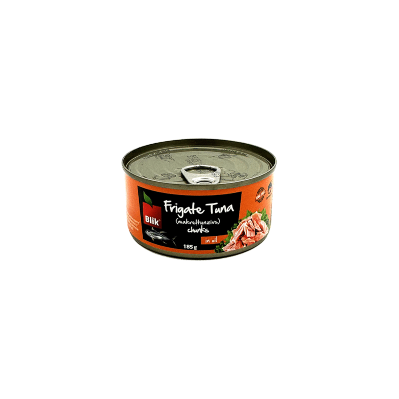 Skumbrinio tuno gabalėliai (Lot. Auxis Thazard) 70,2%, Sojų pupelių aliejus, vanduo, daržovių ekstraktas, druska.