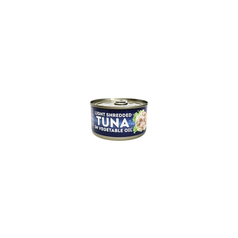 Dryžasis tunas (Katsuwonus pelamis)70%, SOJŲ PUPELIŲ aliejus, vanduo, druska.