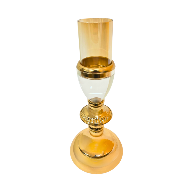 Elegantiška ir moderni aukso spalvos žvakidė, puikiai tinkanti tiek klasikiniam, tiek šiuolaikiškam interjerui. Derinamos skaidraus ir auksinio paviršiaus detalės suteikia žvakidei prabangos pojūtį, todėl ji tampa stilingu akcentu šventėms, fotosesijoms ar kasdieniam namų dekorui.